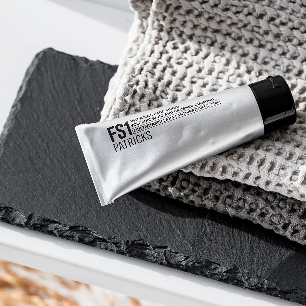 Die Anti-Aging-Gesichts-Peeling von Patrick's ist ein kraftvoller Peeling mit doppelter Wirkung. Es hydratisiert die Haut tief und stimuliert die Zellerneuerung. Vulkanischer Sand und pulverisierter Diamant kombiniert mit AHA helfen, abgestorbene Hautzellen zu entfernen und Poren tief zu reinigen.