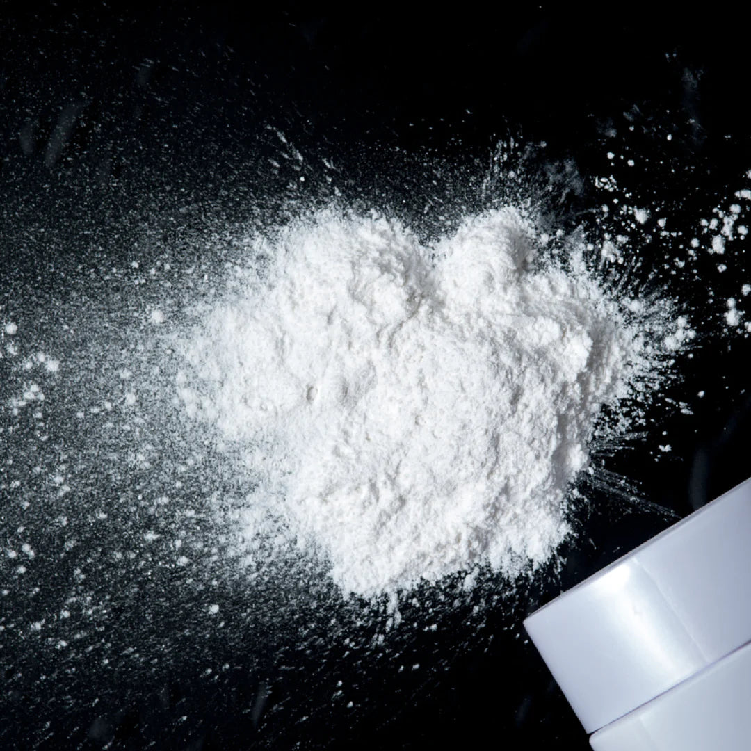 - Schütteln Sie eine kleine Menge Puder in die Handfläche